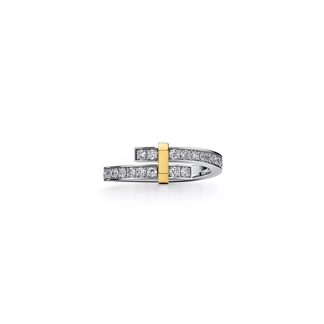 Tiffany Edge Bypass Ring in Platinum and Yellow Gold with Diamonds, Narrow