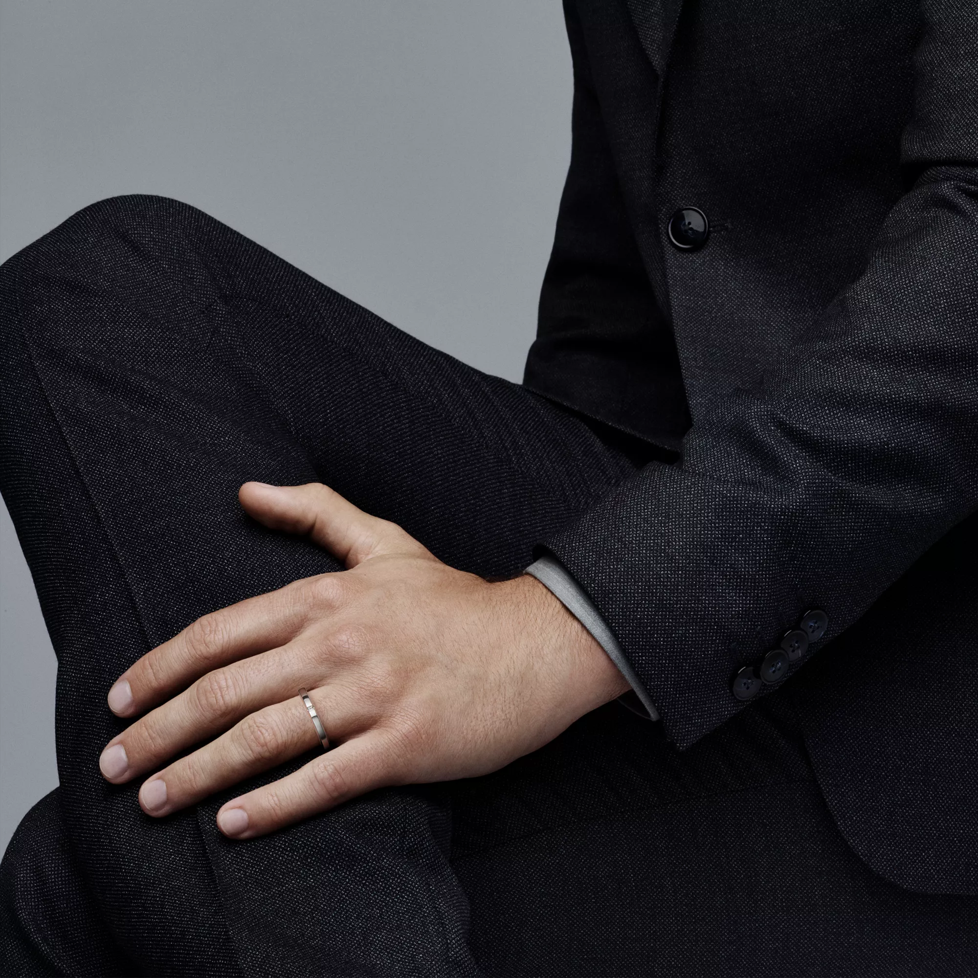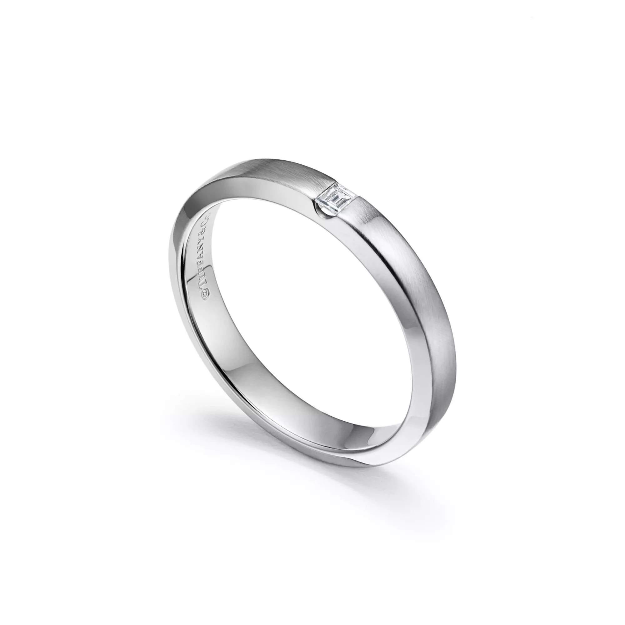 Platinum with a baguette diamond3 mm wideCarat weight .03 -