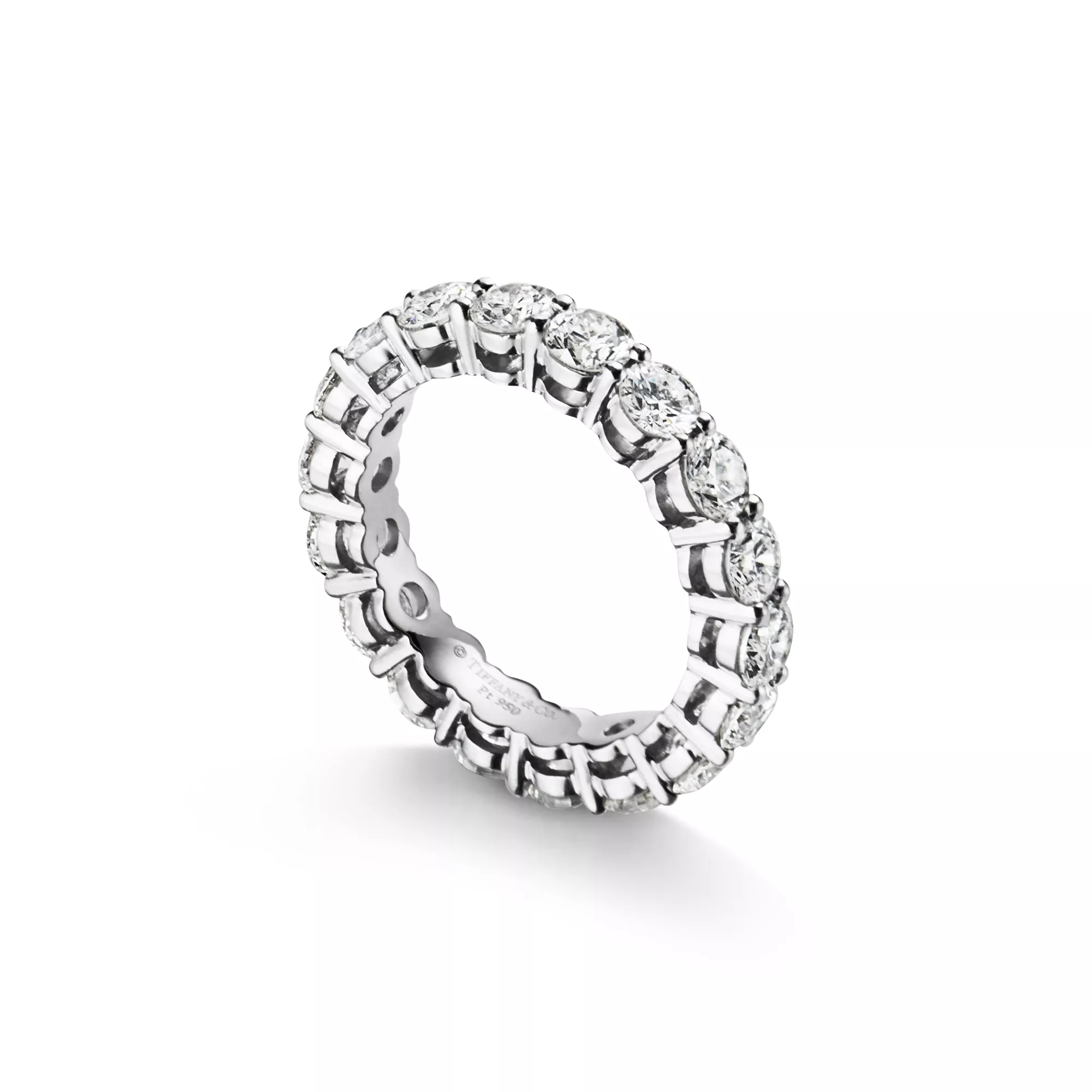Each Tiffany Forever ring celebrates the eternal bond of lifelong love and commitment. This platinum band is expertly set with a full circle of striking round brilliant diamonds. Pair it with other platinum designs for a timeless look.
