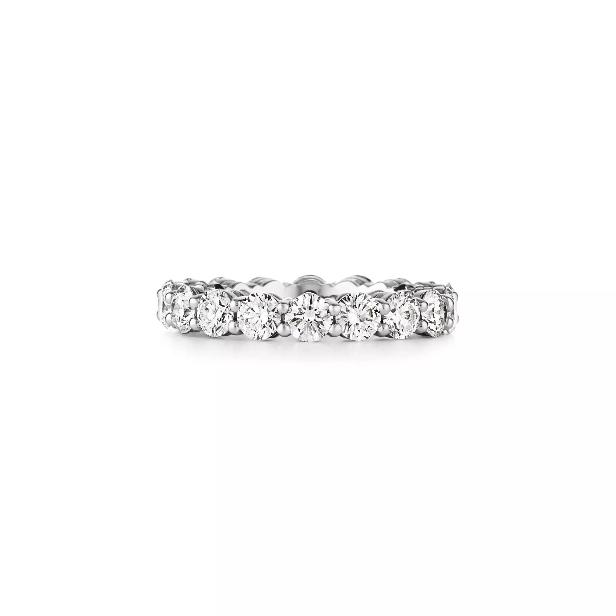 Each Tiffany Forever ring celebrates the eternal bond of lifelong love and commitment. This platinum band is expertly set with a full circle of striking round brilliant diamonds. Pair it with other platinum designs for a timeless look.