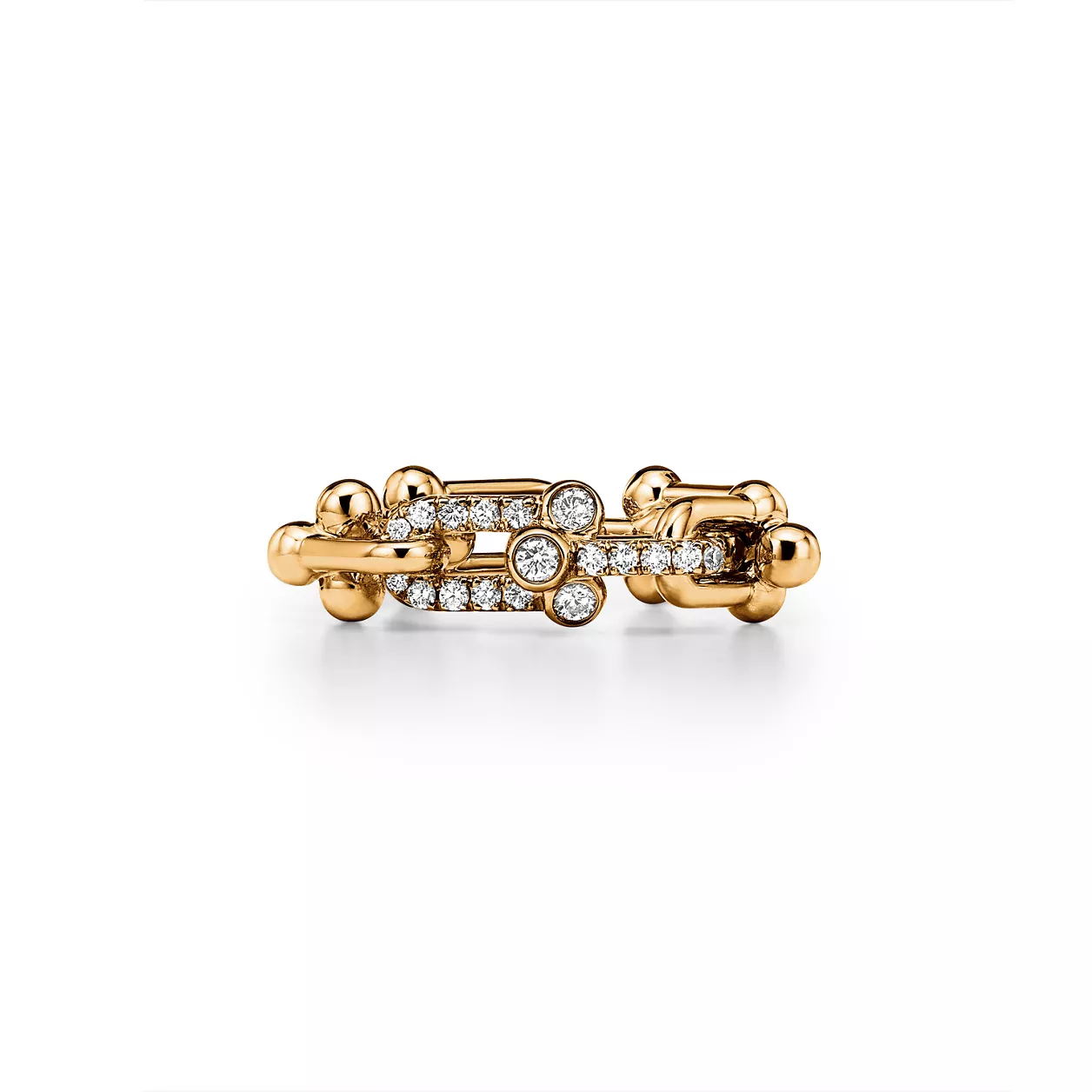 Tiffany HardWear Small Link Ring in Yellow Gold with Diamonds