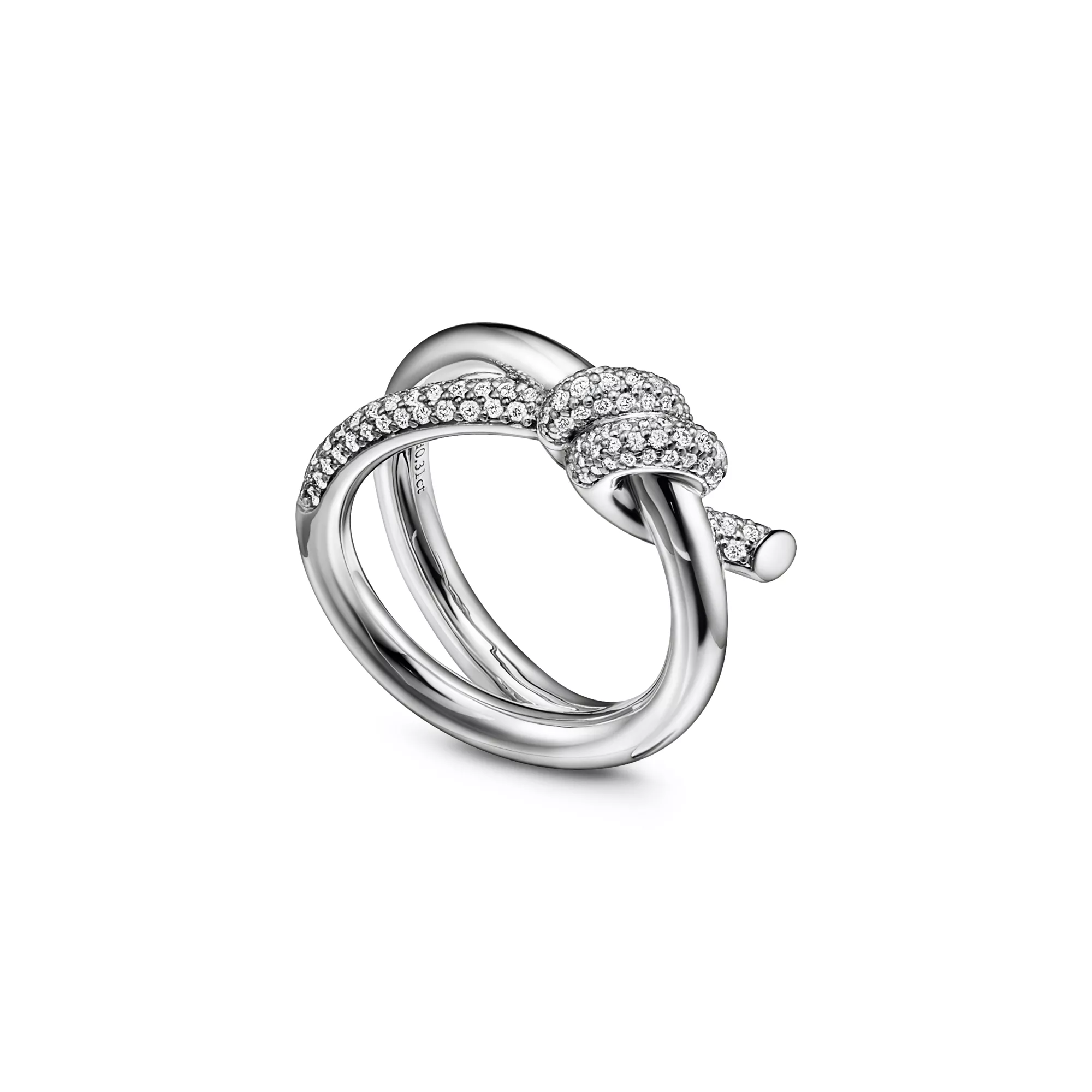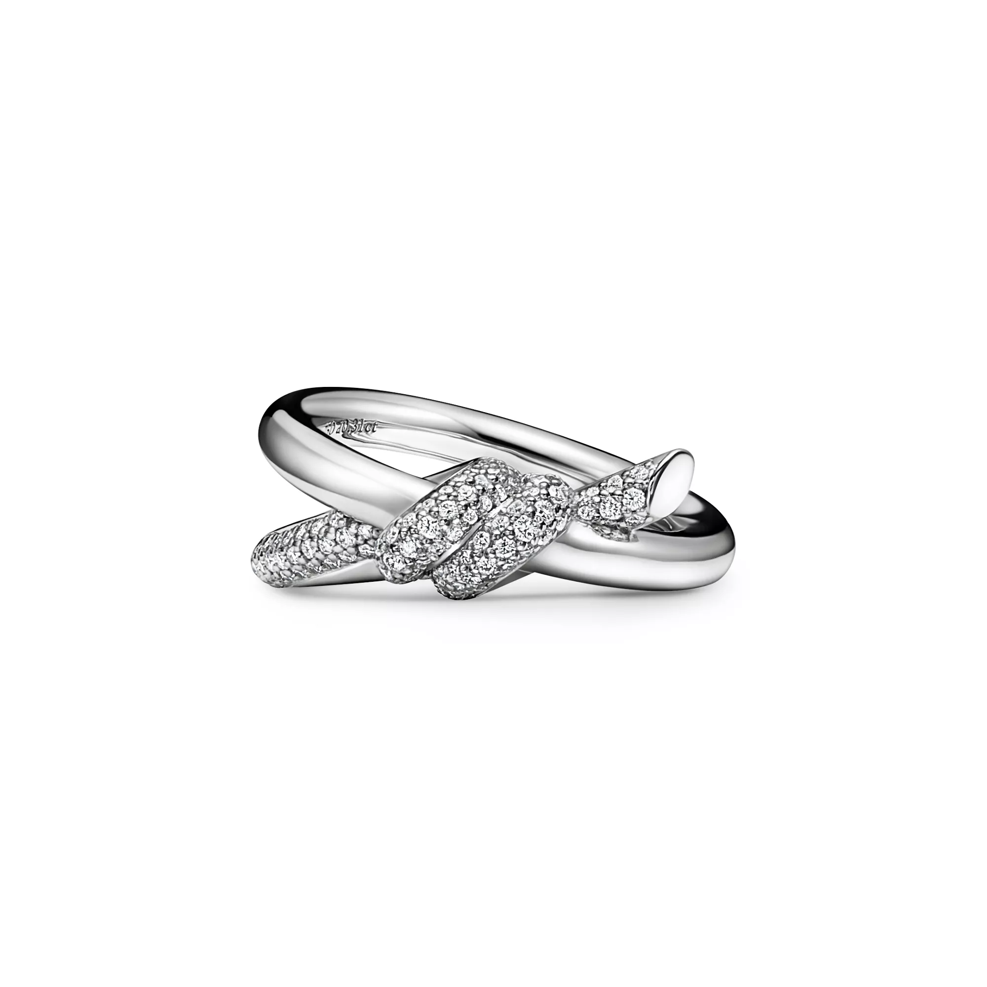 Tiffany Knot Double Row Ring in White Gold with Diamonds