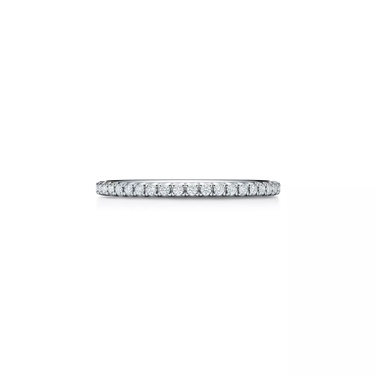 Streamlined and modern, the Tiffany Metro collection twinkles like a nighttime city skyline. Diamonds line this simple yet stunning design.