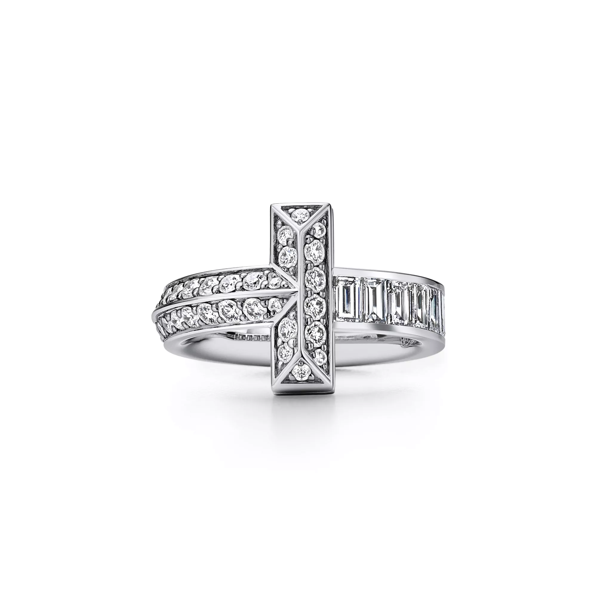 Tiffany T T1 Ring in White Gold with Baguette and Pavé Diamonds