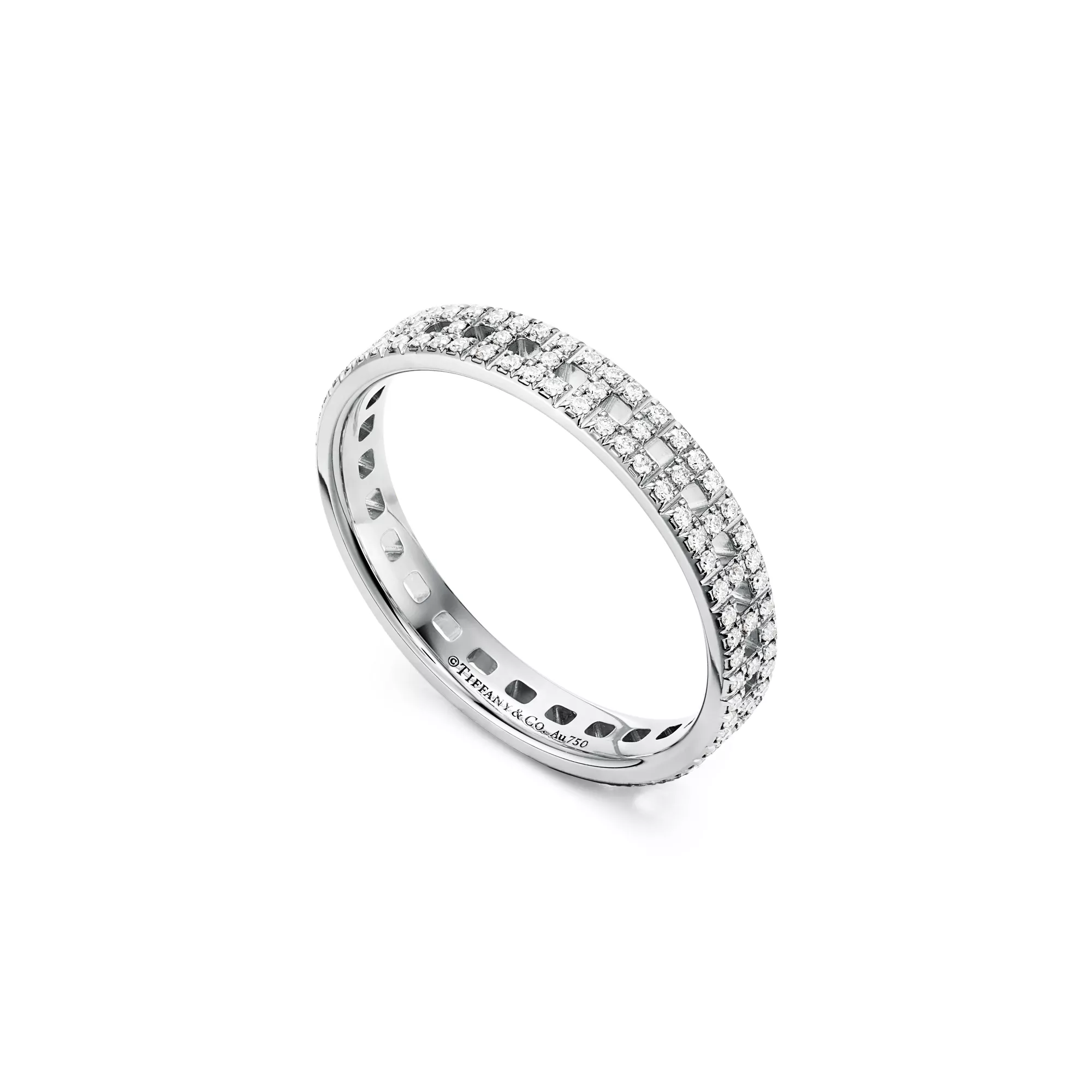 Tiffany T True Narrow Ring in White Gold with Pavé Diamonds