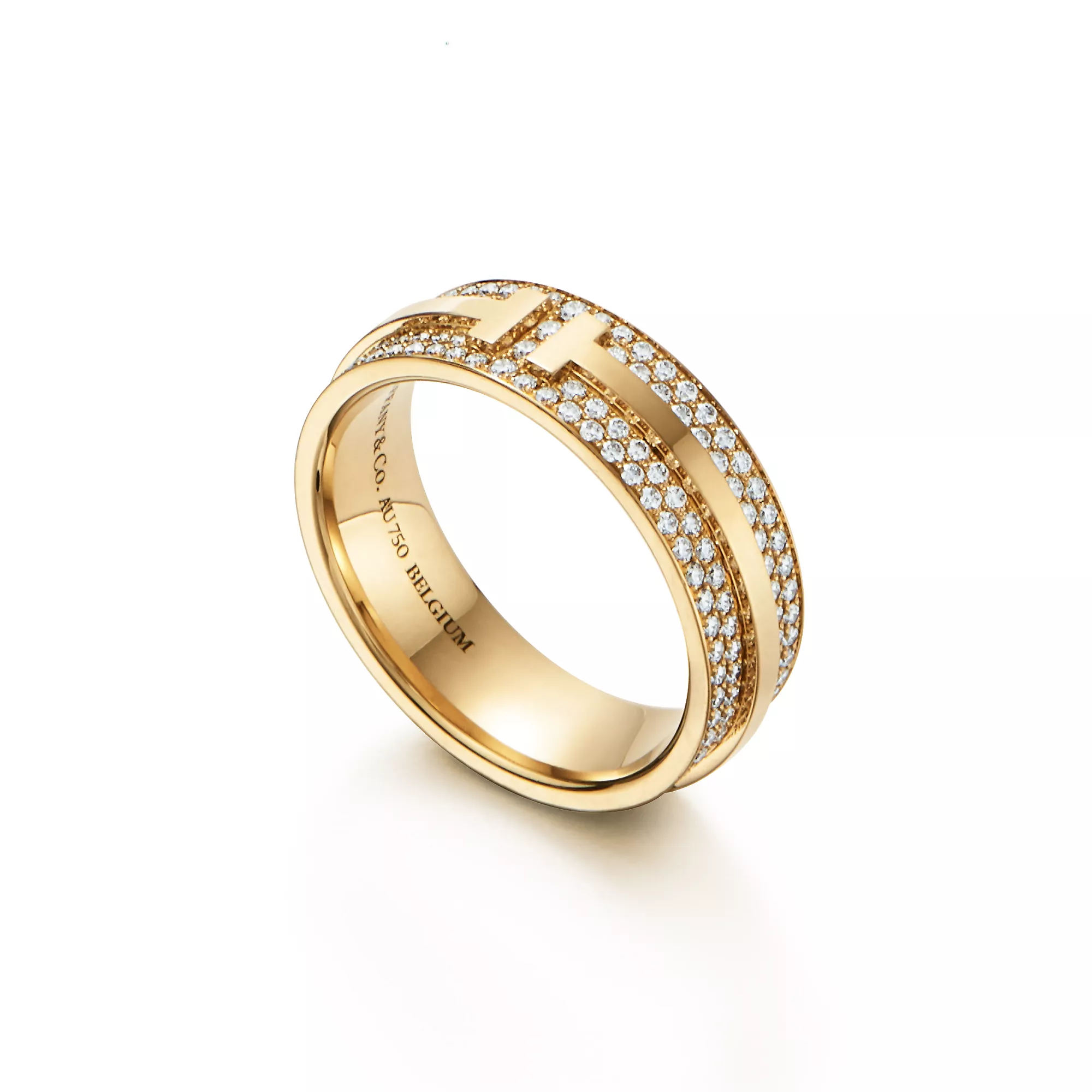 Tiffany T Wide Pavé Diamond Ring in Yellow Gold