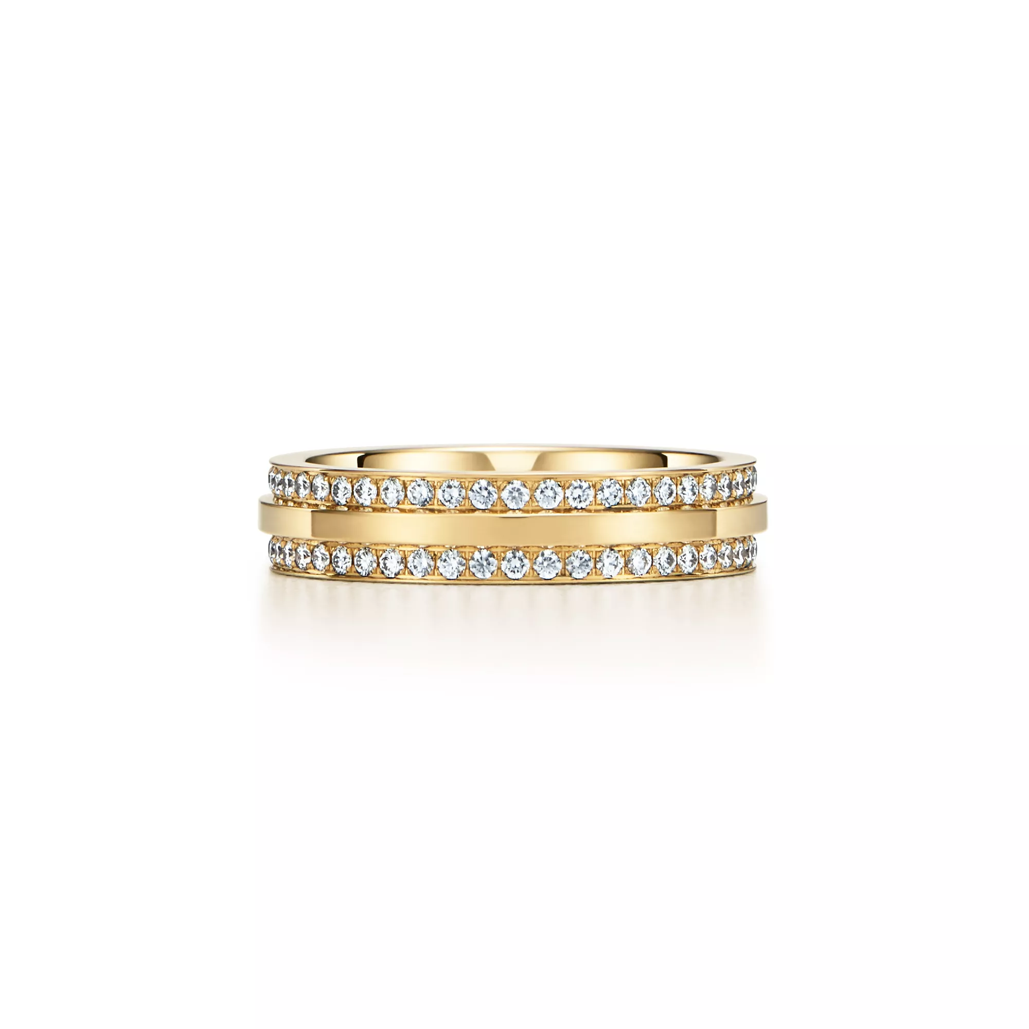 4. Tiffany T:Narrow Pavé Diamond Ring in Yellow Gold