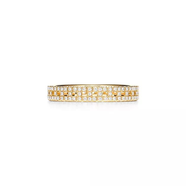 Tiffany T True Narrow Ring in Gold with Pavé Diamonds