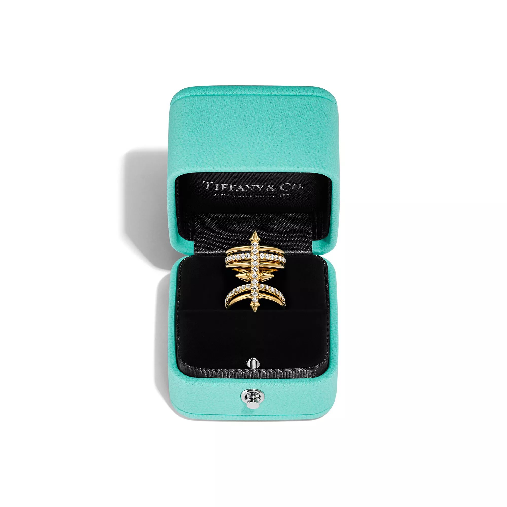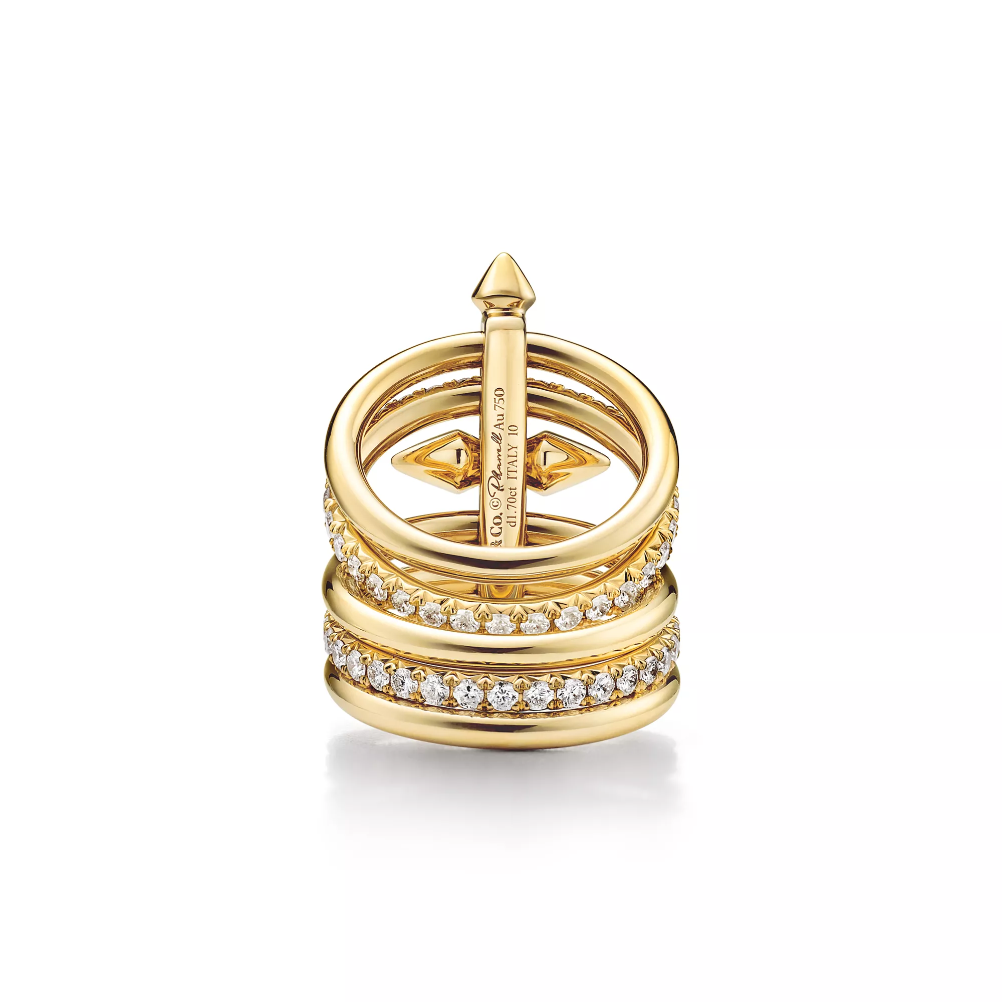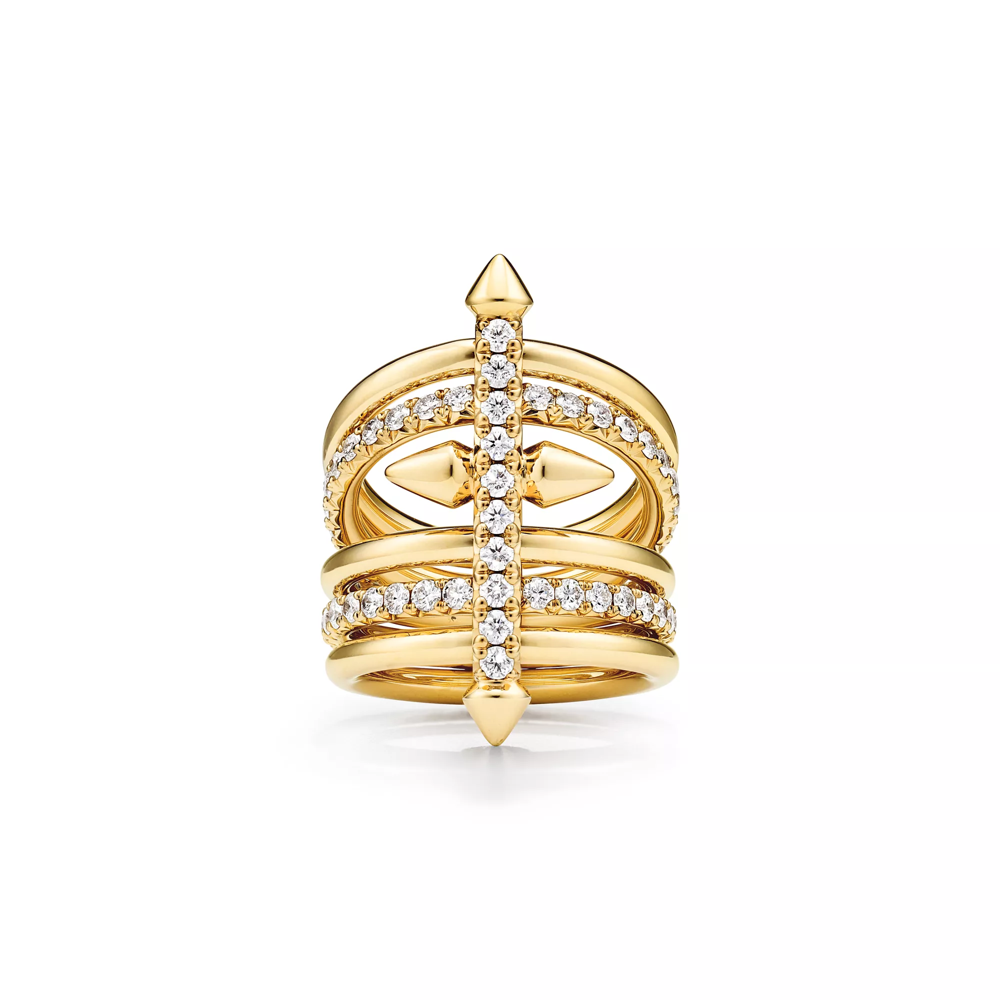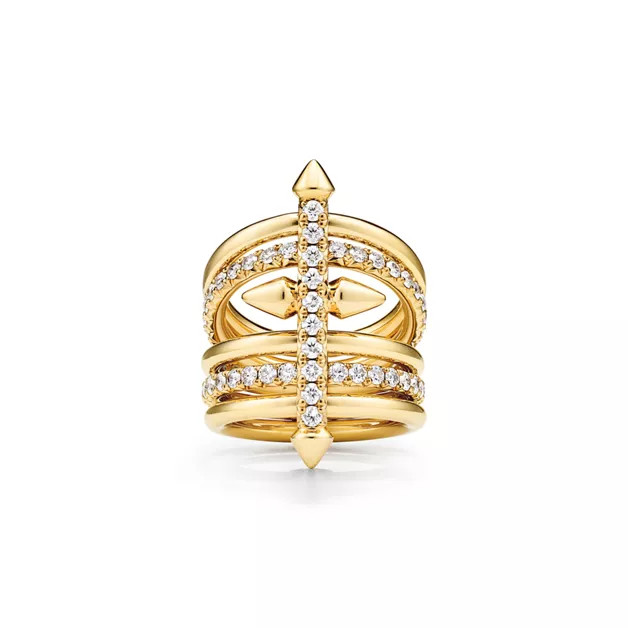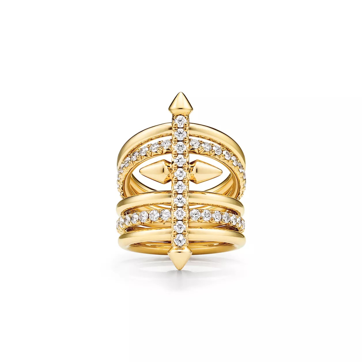 4. Tiffany Titan by Pharrell Williams:Five-row Ring in Gold with Diamonds