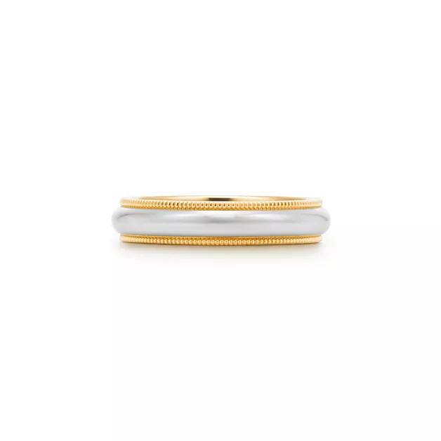 Tiffany Together Milgrain Band Ring in Platinum and Yellow Gold, 4 mm Wide