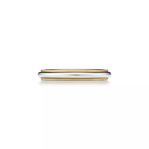 Tiffany Together Milgrain Band Ring in Yellow Gold and Platinum