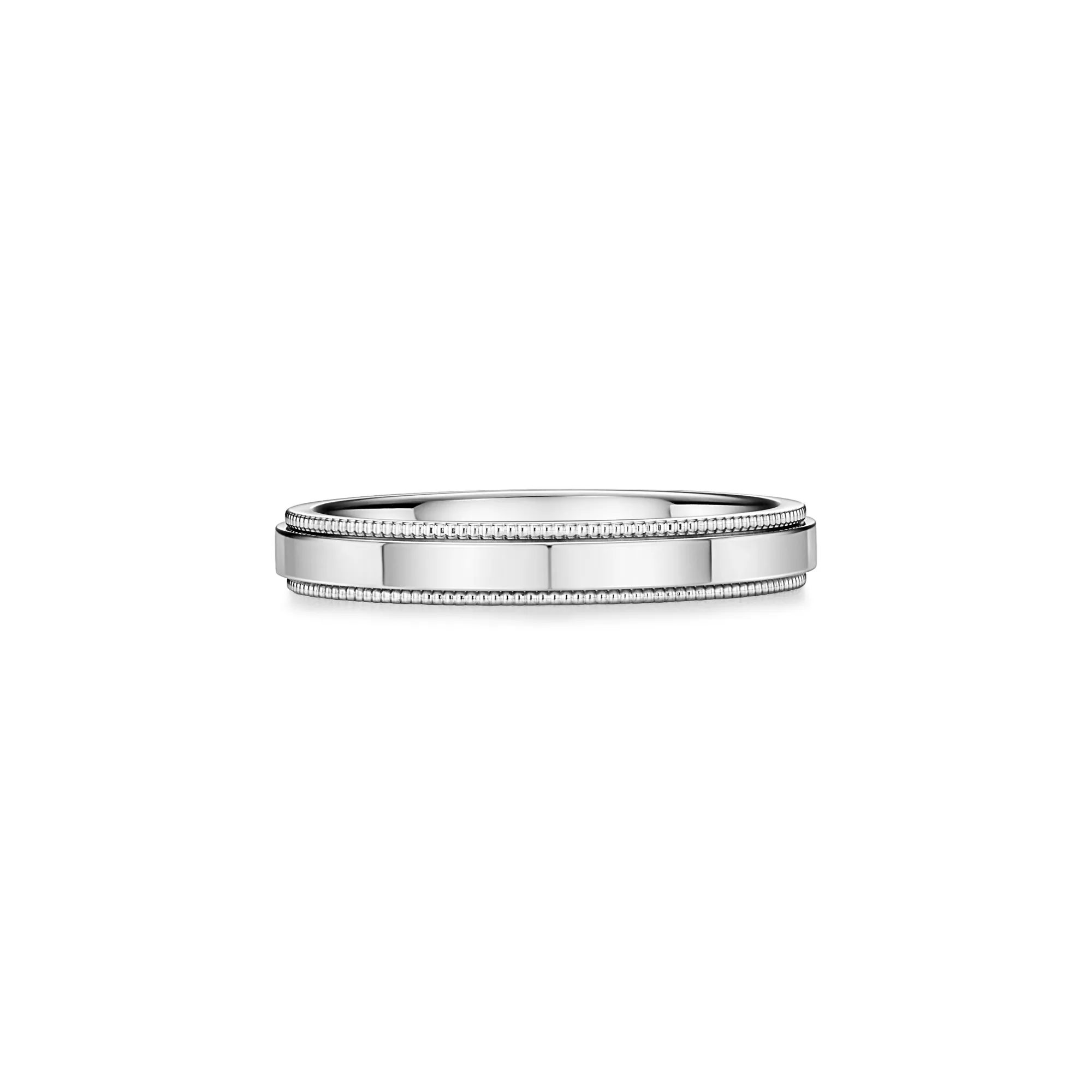 The Tiffany Together collection represents how our most important commitments are uniquely ours—and only we can define them. This ring features textured milgrain detailing that accents a sleek band. Wear one ring as a wedding band or two stacked together for a bold look.