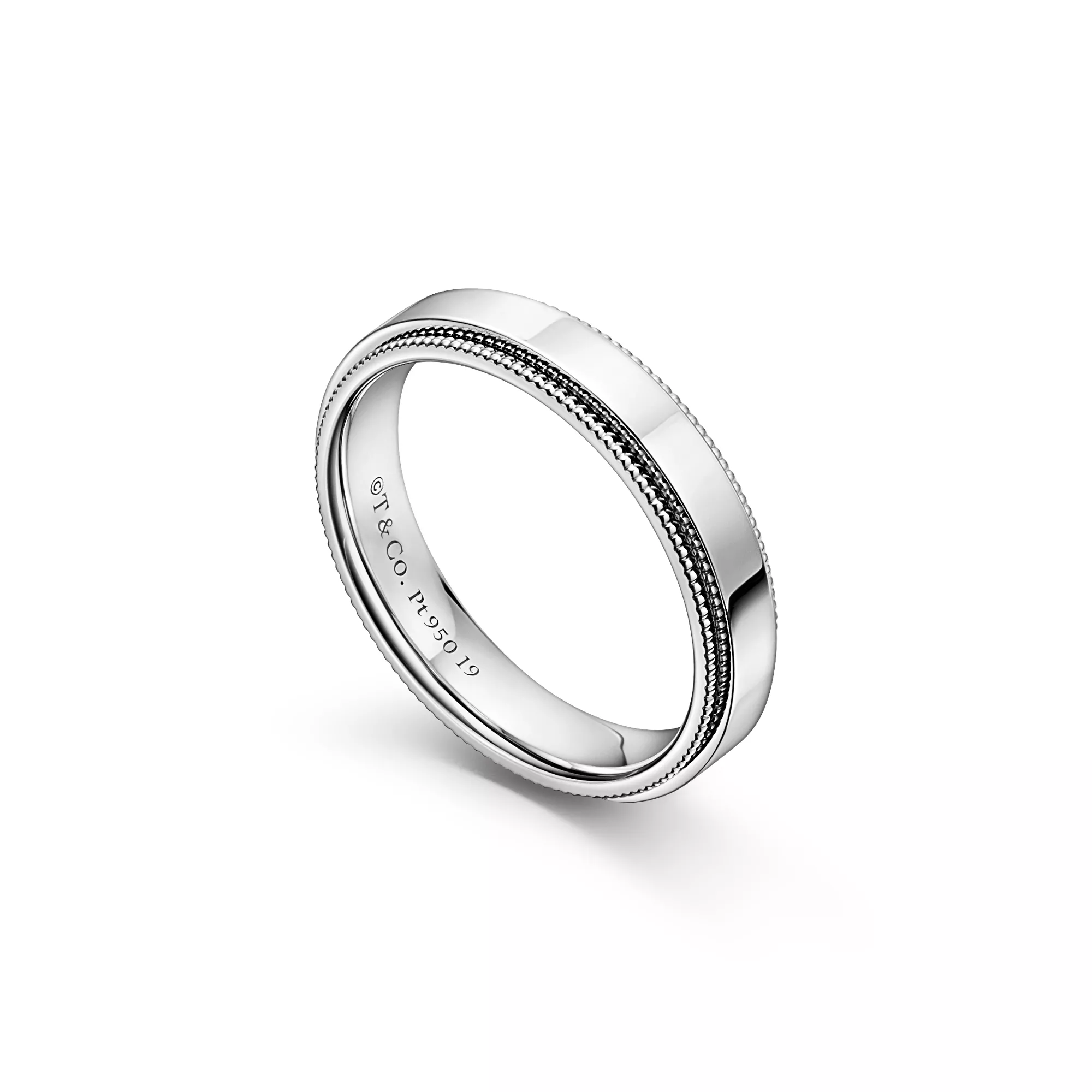 The Tiffany Together collection represents how our most important commitments are uniquely ours—and only we can define them. This ring features textured milgrain detailing that accents a sleek band. Wear one ring as a wedding band or two stacked together for a bold look.