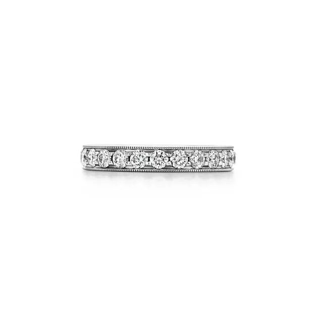 Tiffany Together Milgrain Band Ring in Platinum with Diamonds, 3.2mm Wide