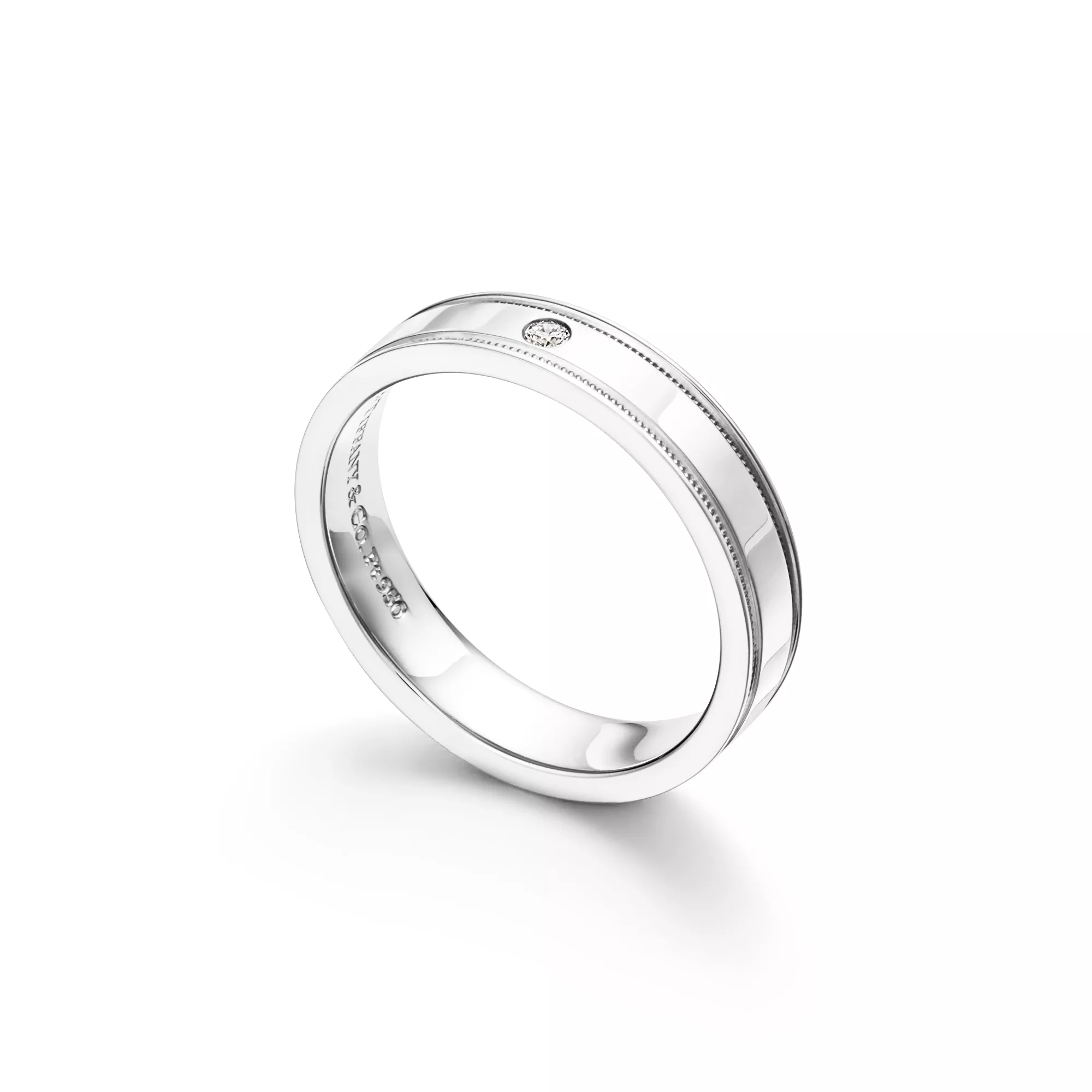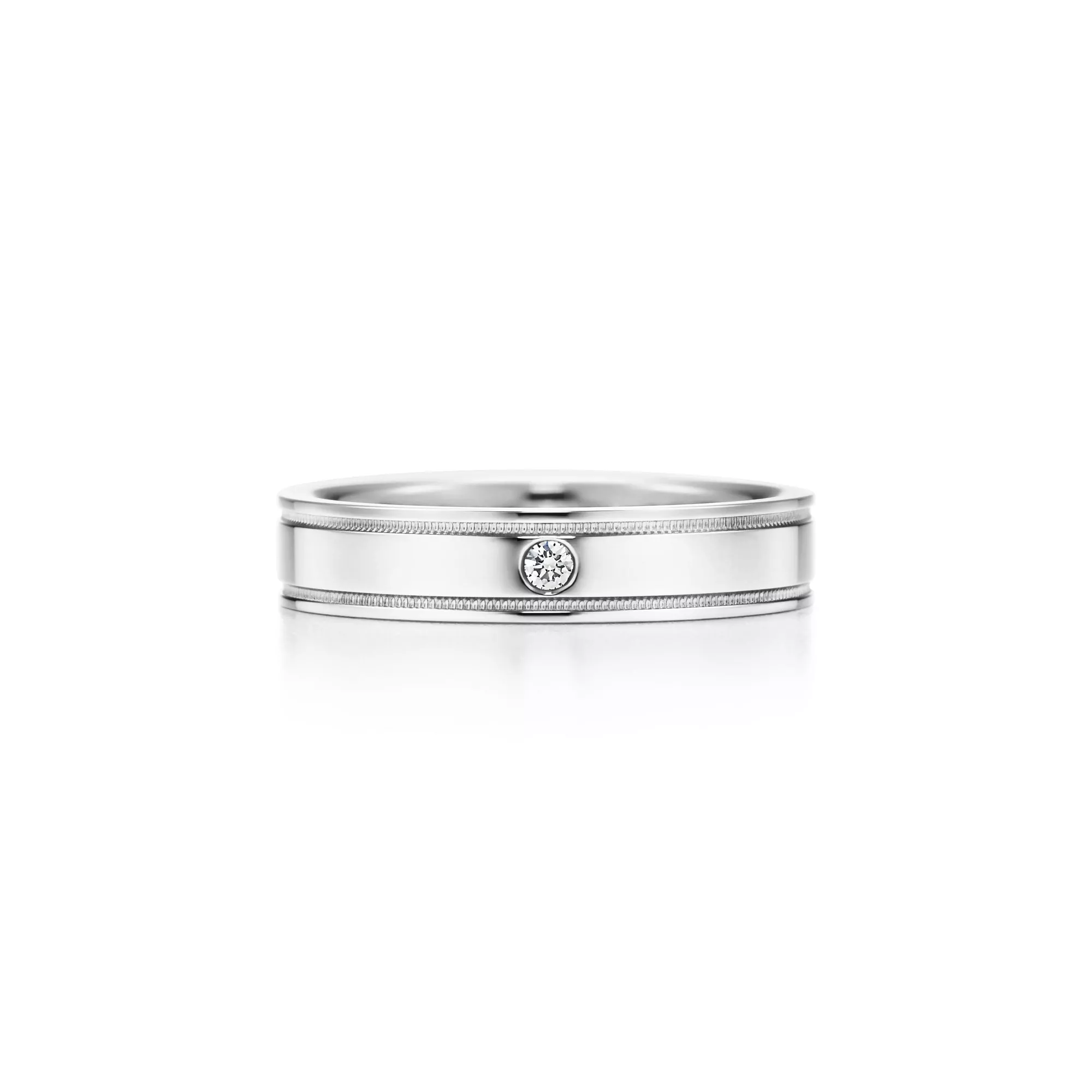 Tiffany Together Double Milgrain Band Ring in Platinum with a Diamond, 4 mm Wide