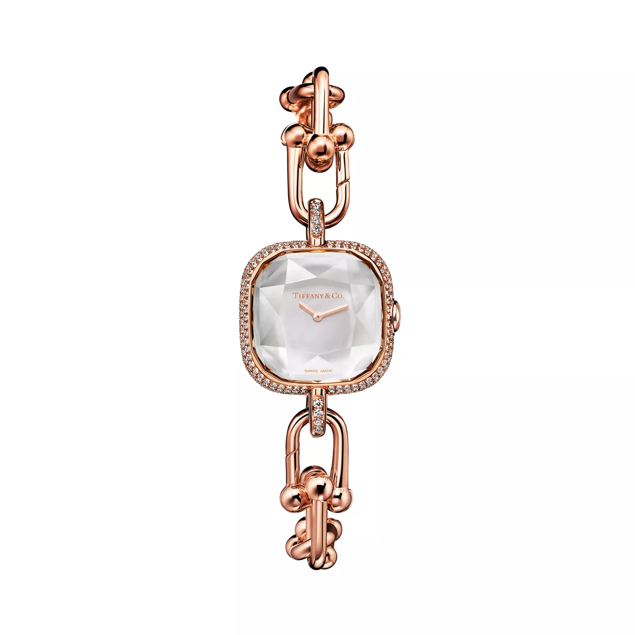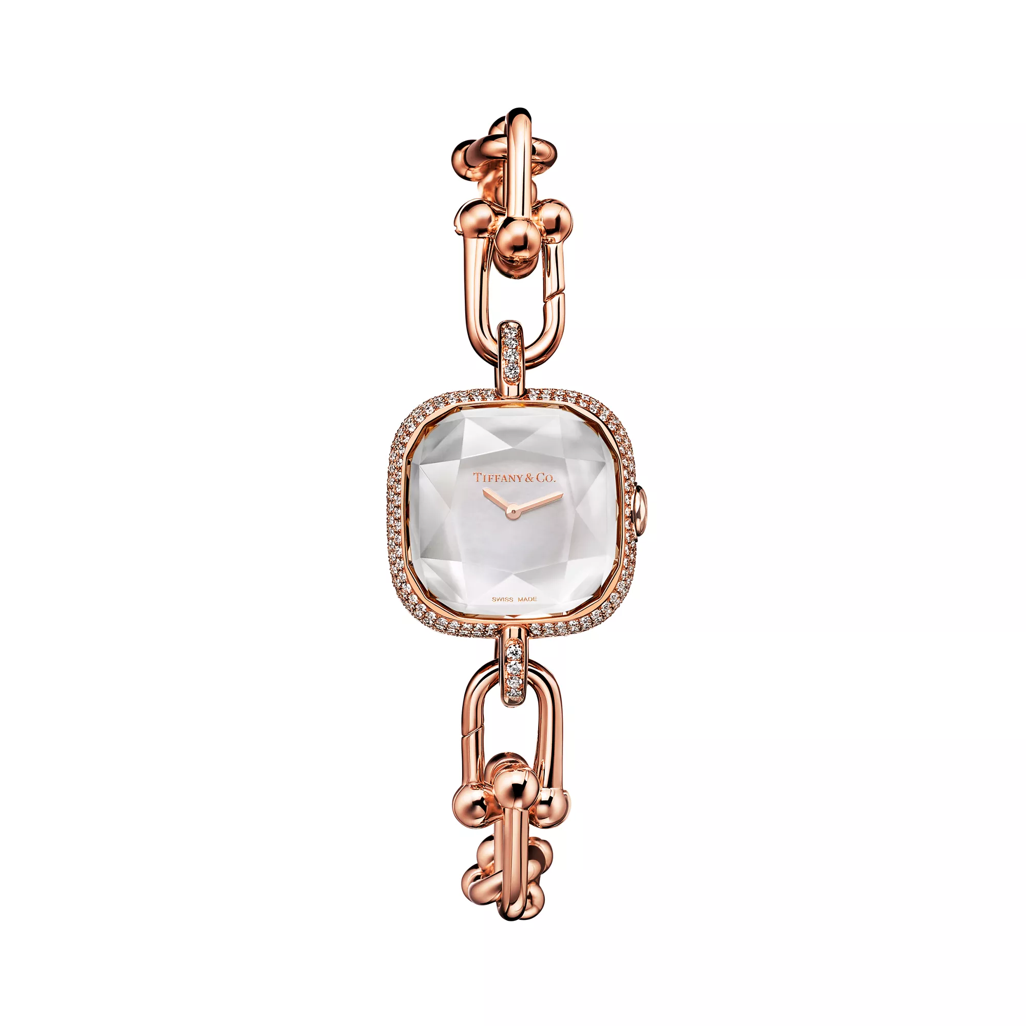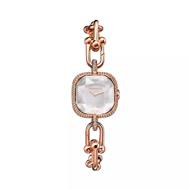 3. Tiffany HardWear:Watch in Rose Gold with Pavé Diamonds and White Mother-of-pearl