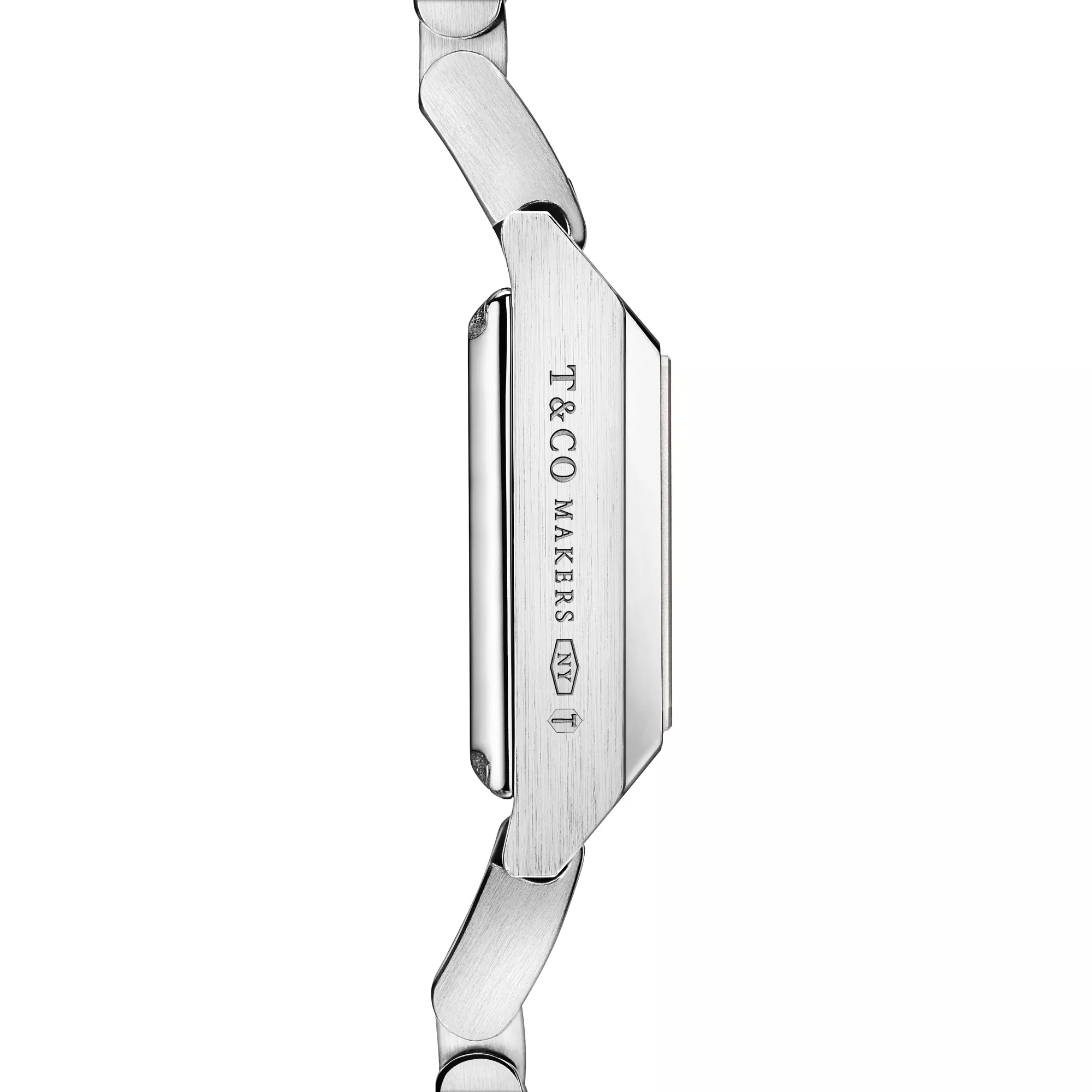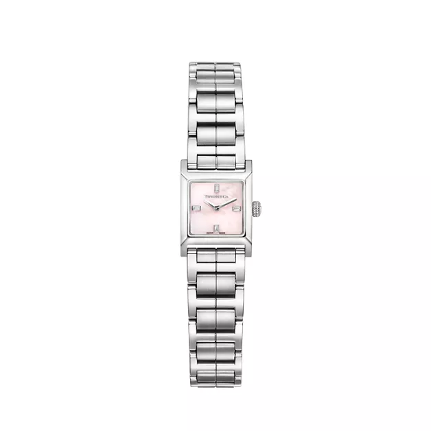 3. Tiffany 1837:Makers 16 mm Square Watch in Stainless Steel with a Pink Mother-of-pearl Dial